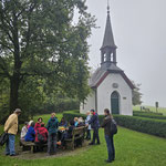 Unterwegs wurden Informationen zur Landschaft und Kultur der Region vermittelt. Die entspannte Wanderung führte zunächst zur Germana-Kapelle, die reizvoll auf einer Höhe liegt. Die 1714 errichtete und 1889 erneuerte Kapelle gedenkt der Hl. Germana, Schutzheilige der Schäfer*innen und armen Kinder.